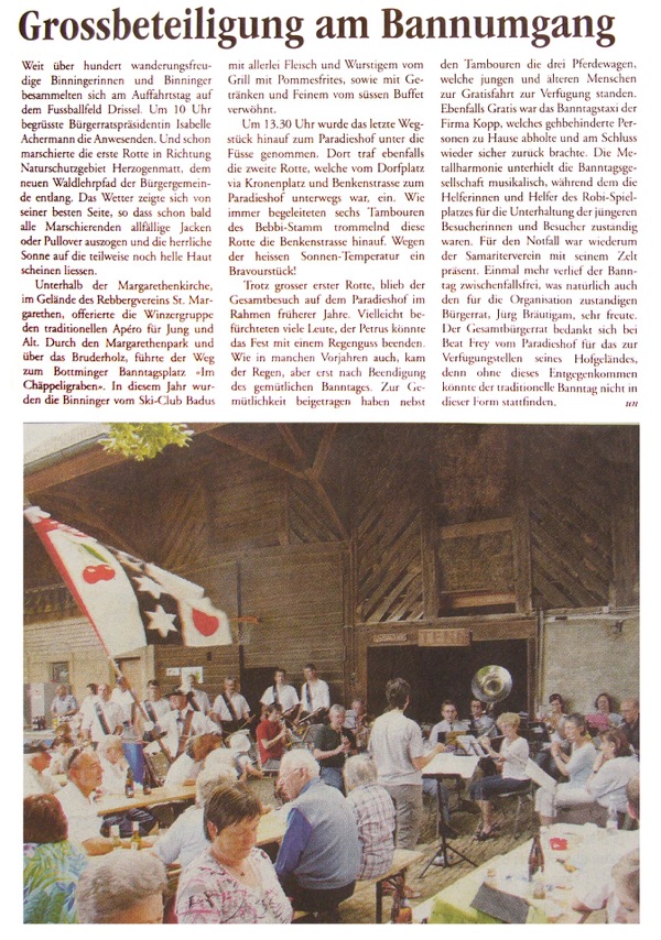 Auf dem Paradieshof: Gemütliches Beisammensein nach dem Bannumgang mit Unterhaltung der Metallharmonie Binningen.